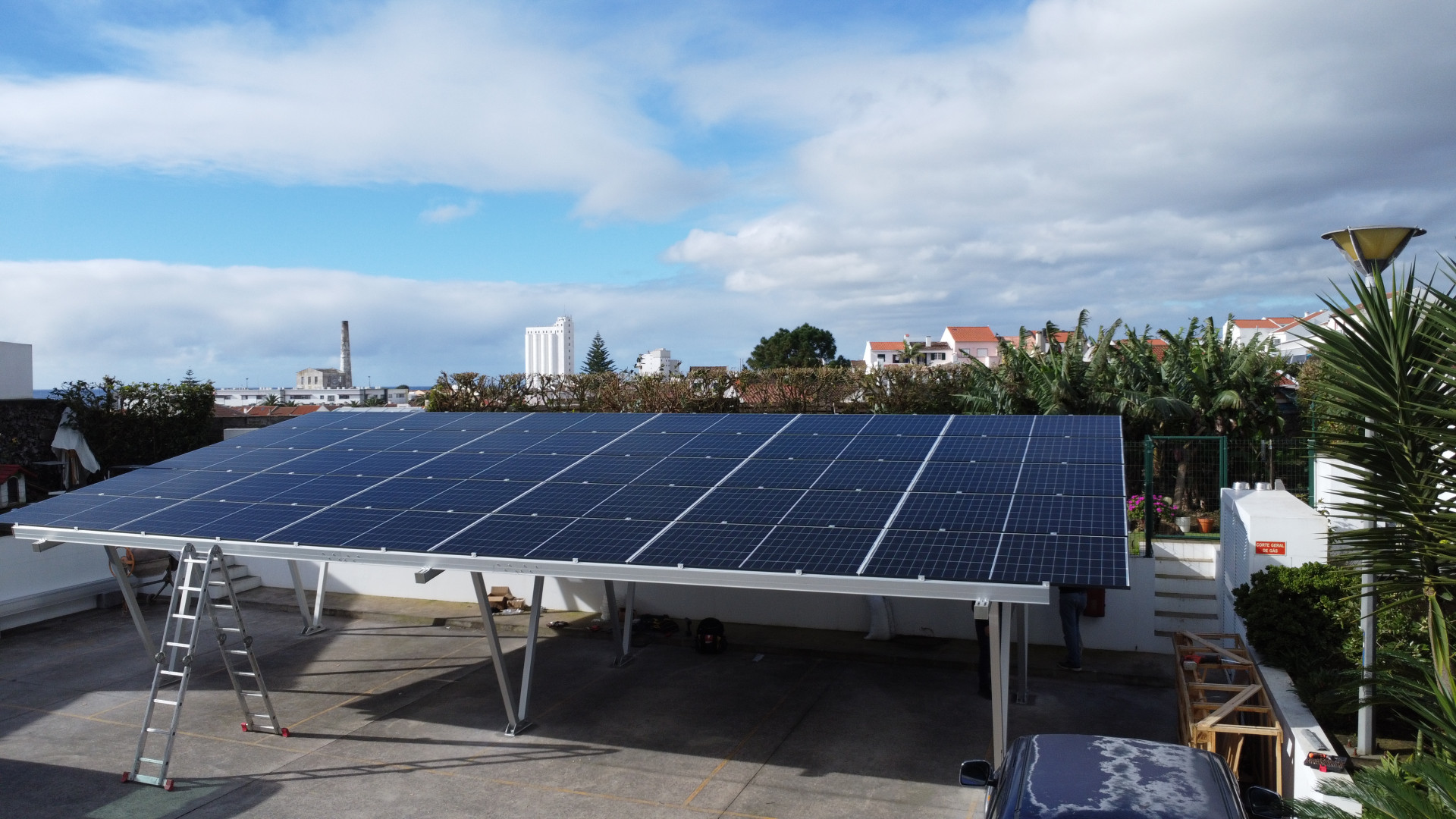 Fornecimento e instalação de estrutura para estacionamento e 15,15 kW para fornecimento energia para um escritório, em Lagoa, na Ilha de São Miguel.